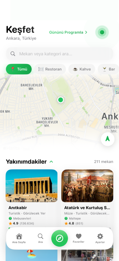 Çevrenizdeki tüm mekanları harita üzerinde görün, kategorilere göre filtreleyin ve yol tarifini anında alın.